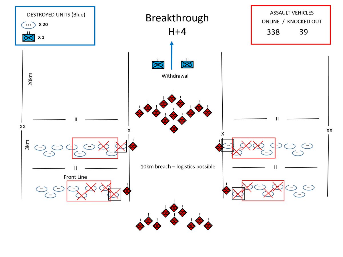 At this point the Russians have forced a ten-kilometer breach through both defensive lines (enough to create a safe corridor), passed a regiment through and defeated the AFU's local reserves.