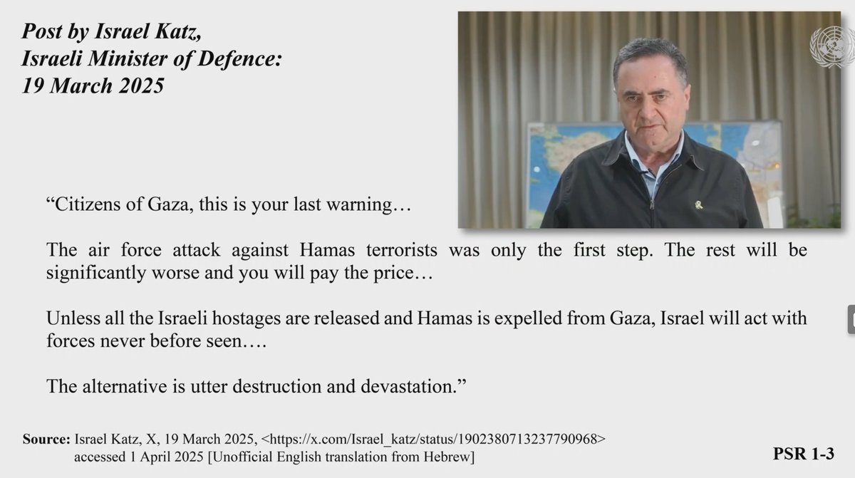 @CIJ_ICJ @Israel_katz @antonioguterres @ArdiImseis @queensulaw @OsgoodeNews 'Israel is intentionally creating conditions intended to make Gaza uninhabitable. The recent creation of an agency to manage the "voluntary" deportation of Palestinians from Gaza is further evidence of an Israeli policy to de-Palestinianize the occupied Palestinian territory.'