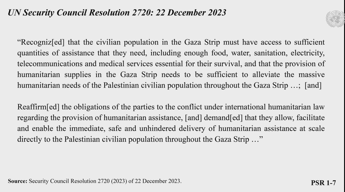 @CIJ_ICJ @Israel_katz The law is also crystal clear, and comes from the UN Security Council, General Assembly & the ICJ itself: Israel must immediately provide safe & unhindered delivery of humanitarian assistance at scale to Gaza. Instead, Israel has flouted the Court's orders & impeded aid delivery.