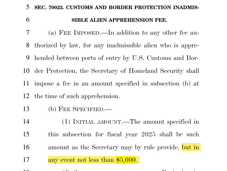 - $5,000 "fee" for being a migrant who is apprehended between ports of entry.