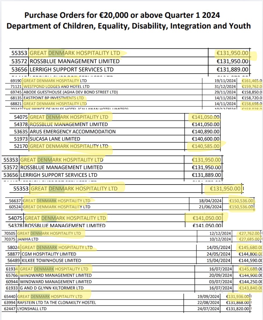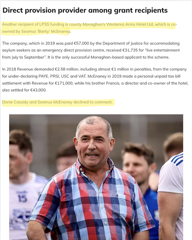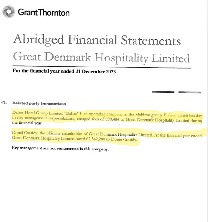 Donie Cassidy's company "Great Denmark Hospitalty Limited" has been paid ~€5million+ in State Contracts for emergency accommodation!!
