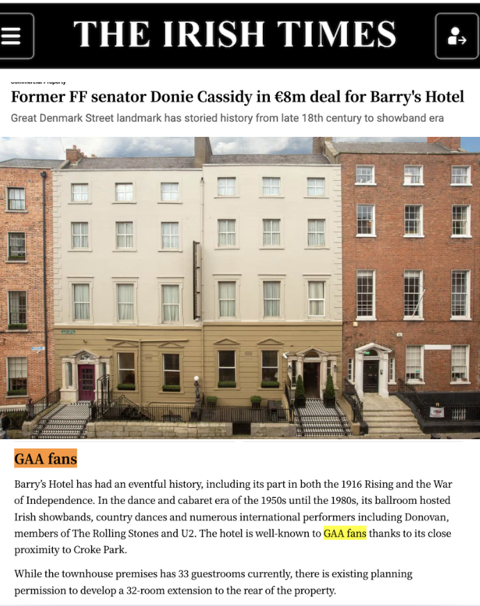 The Company was set up in 2021 for the specific purpose of buying the famous Barry Hotel.. (which played a part in the 1916 rising and popular GAA match day watering hole)