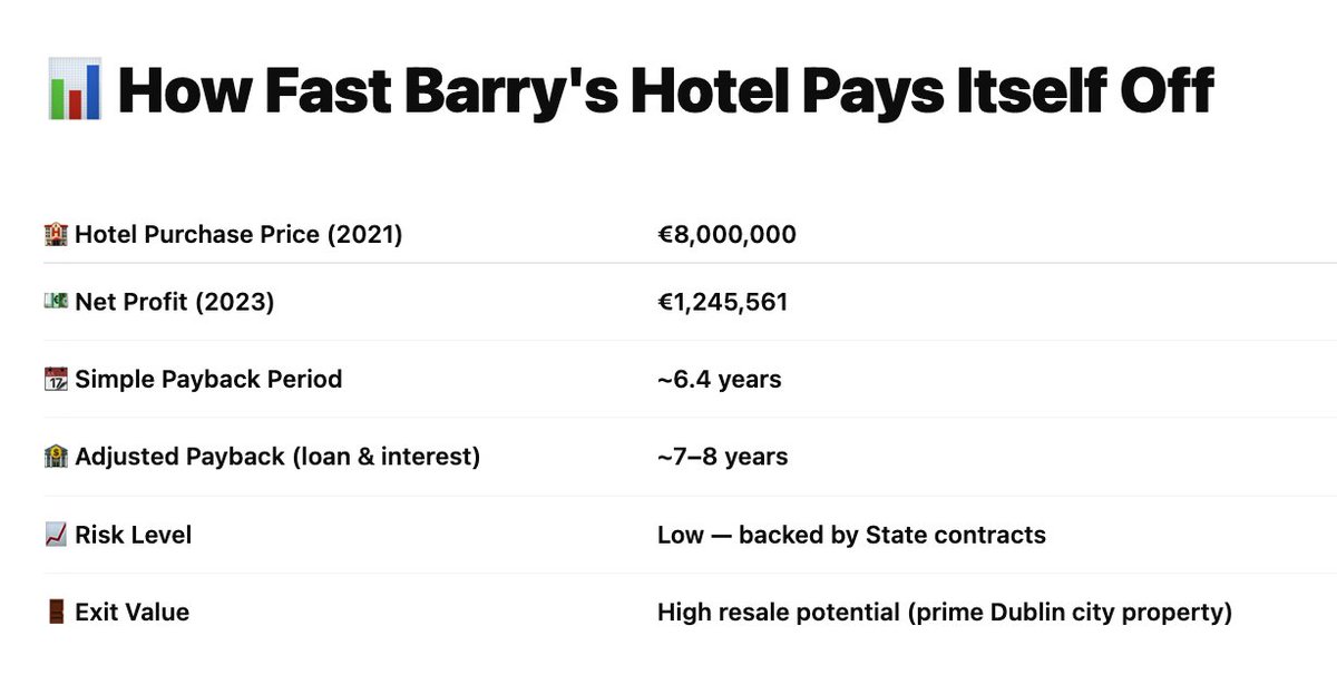 At current rate of profit, Barry’s Hotel will pay itself off in just 6 years ... all thanks to taxpayer money!