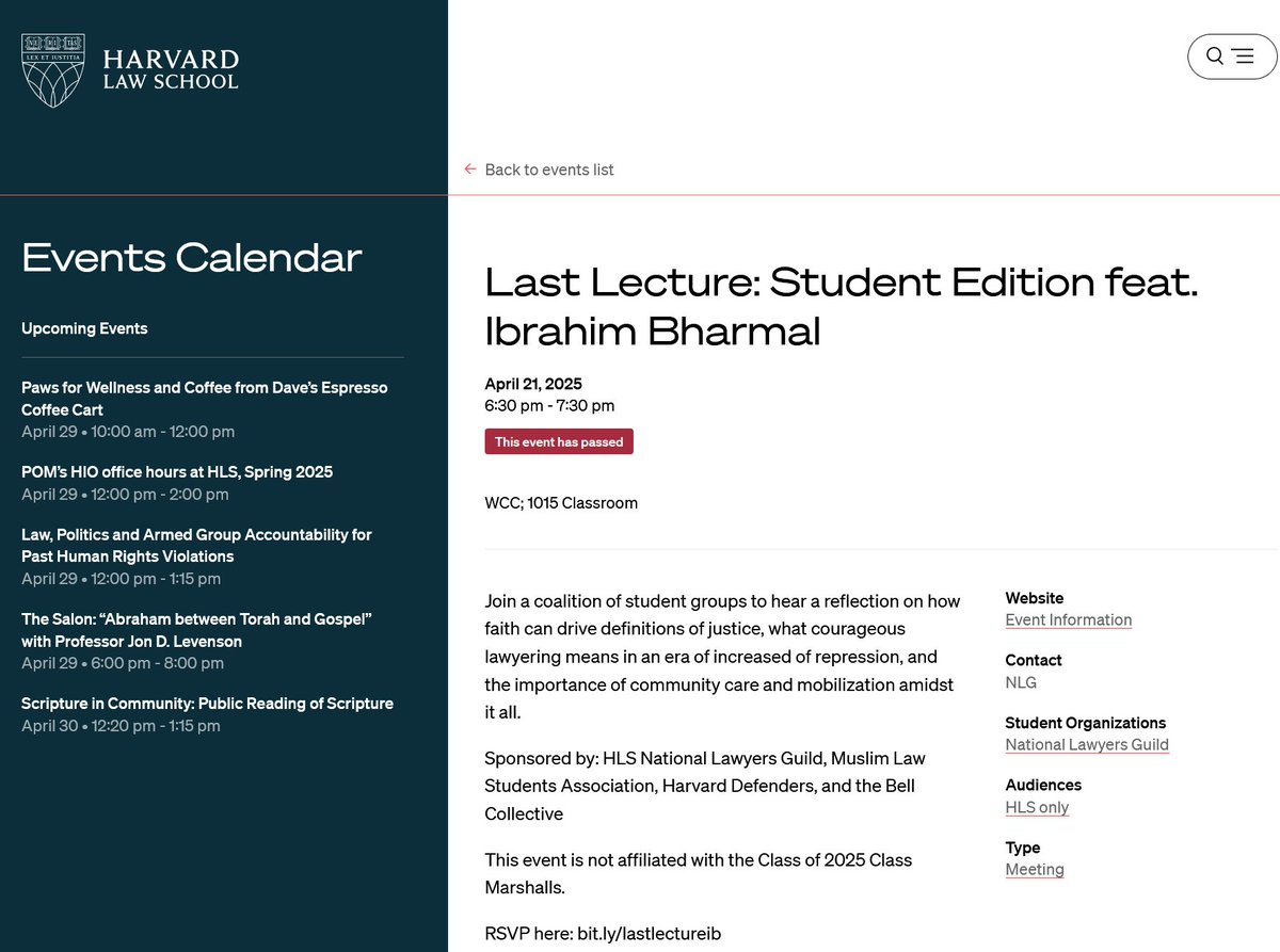 Lecture by Ibrahim Bharmal organized and hosted by four Harvard Law School student organizations, held on April 21, 2025: hls.harvard.edu/events/last-le…