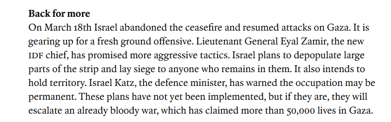 The first red flag (after the headline) is citing Gaza’s “50,000 deaths” without noting the number comes from the Hamas-run health ministry—which doesn’t even claim to distinguish between terrorists and civilians.