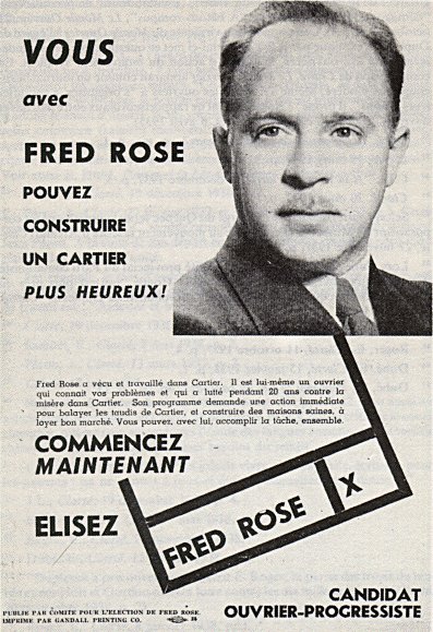 Rose est candidat aux élections de ‘35 à la circo de Cartier et arrive 2e (16%) dans ce quartier ouvrier de Montréal. Il se présente en ’36 aux élections générales (régionales) du Québec et obtient le même score. Le PCC progresse, surtout parmi les mineurs, cheminots et fermiers.