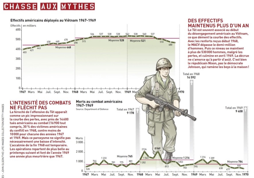 Vint alors l’offensive du Têt. 1000 à 2000 soldats américains sont tués chaque mois (1968-1969). Le combat est si éprouvant et le mouvement de contestation aux États-Unis est si massif que le Pentagone comprend que la guerre ne peut pas être gagnée. La négociation est inévitable.