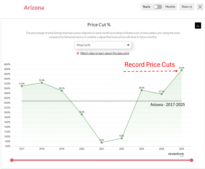 2) Now Florida's housing market is in a housing downturn. Prices are dropping all across the state, and will likely continue to drop for years due to an oversupply of housing combined with record lack of affordability.