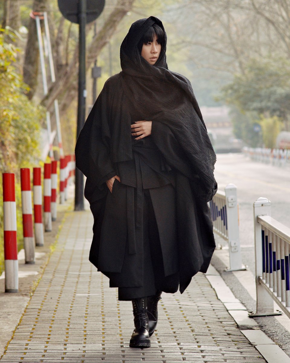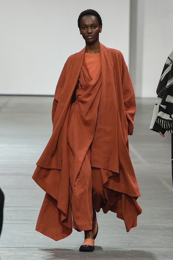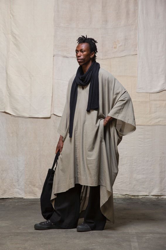 The trapeze silhouette can be genderless to a large degree. The body is erased, leaving the focus on the garments, layers and textures. One becomes a walking canvas showcasing beautiful fabrics and pattern-making; works of art that celebrate artisans and workers. Image