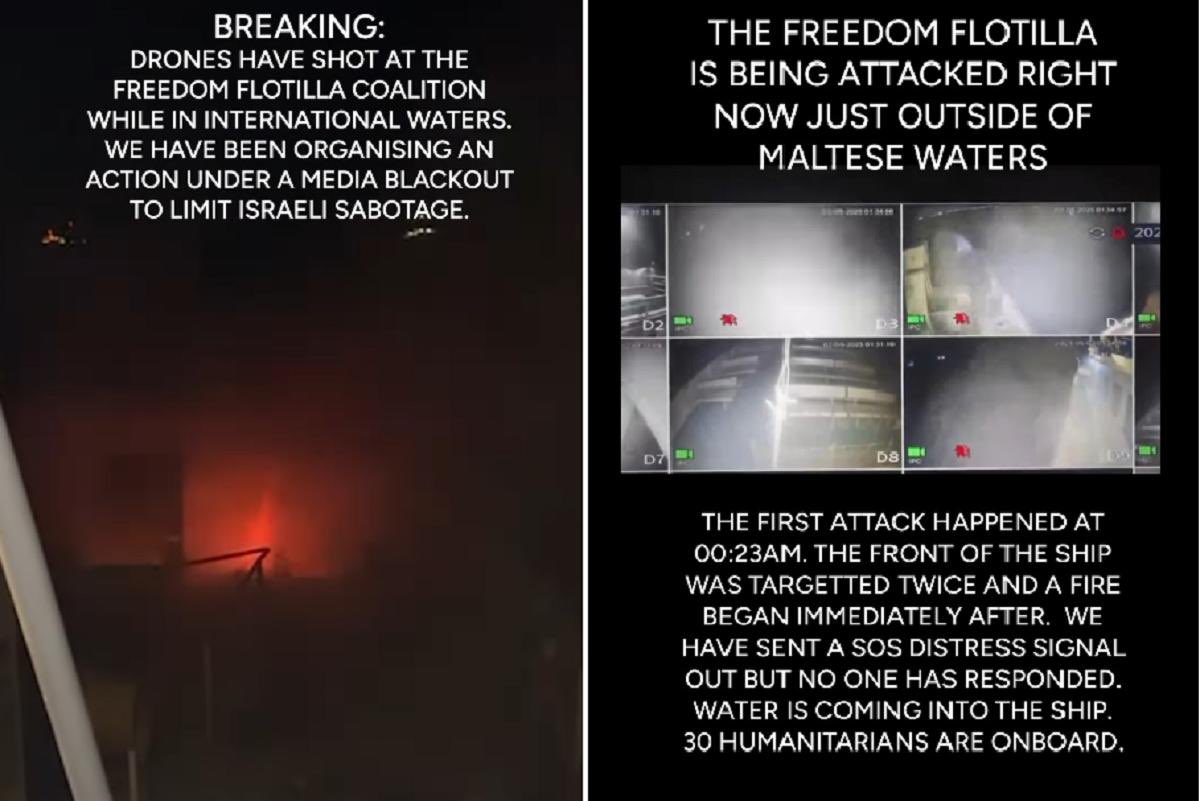 🚨 🧵Breaking: The Gaza-bound aid ship #Conscience was hit by drones in international waters just 17 nm off Malta—Israel’s blockade tactics have reached Europe’s doorstep. Full story👇