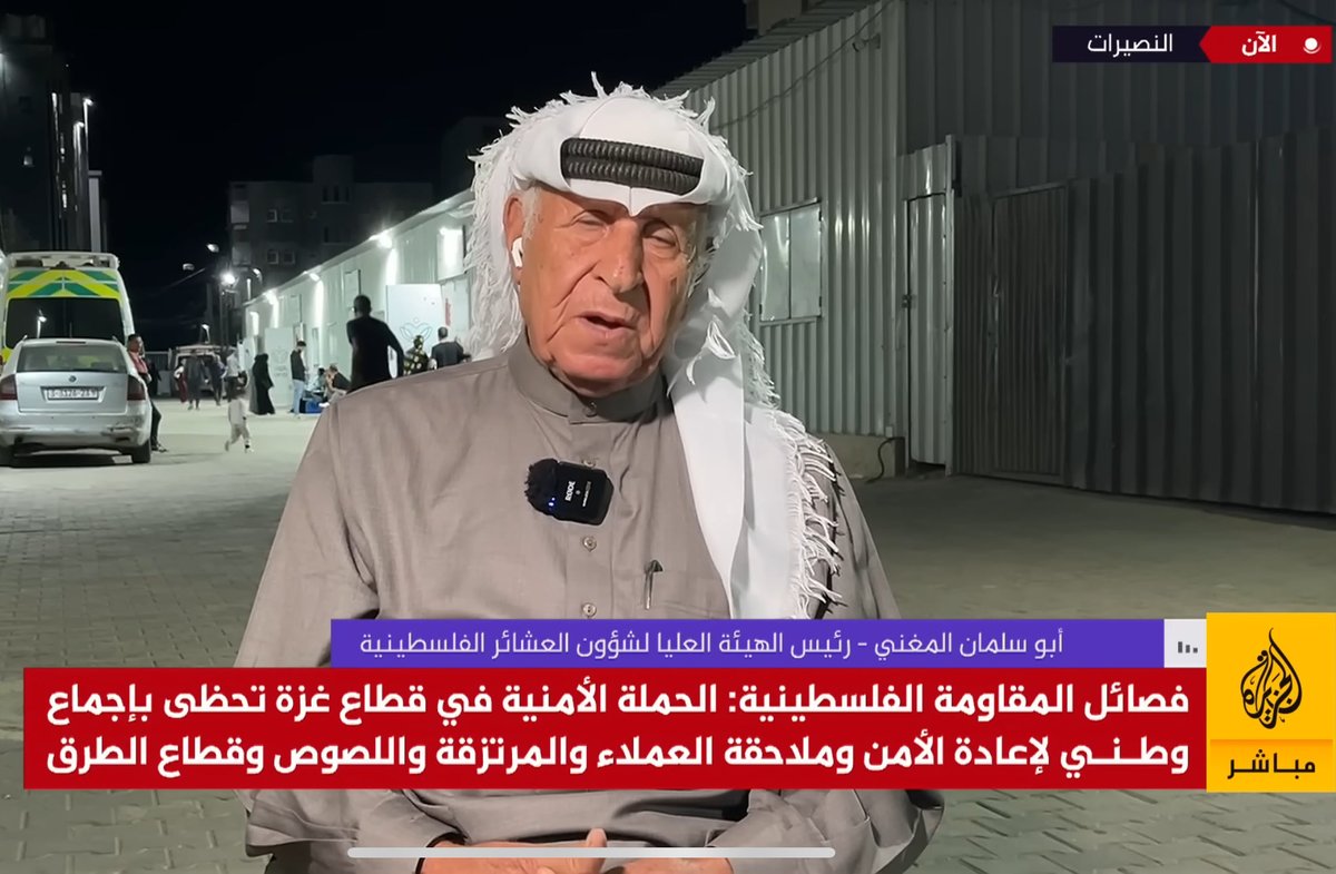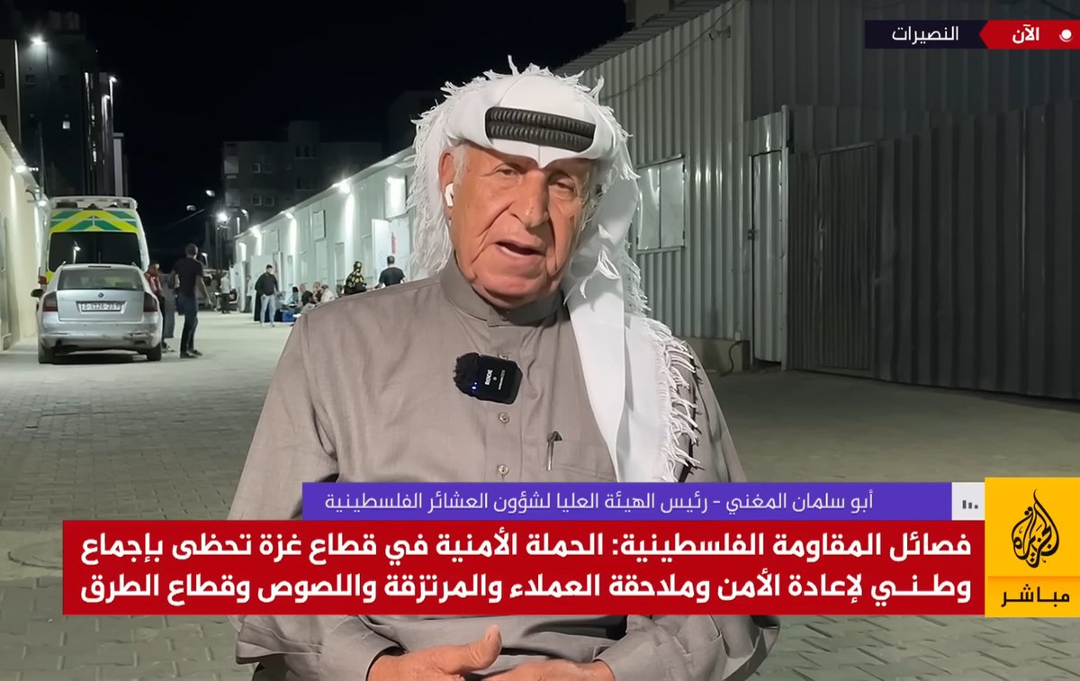 —Mukhtar Abu Salman al-Mughni, head of the Higher Commission for Palestinian Tribes (Gaza’s largest tribal assembly) defended the crackdown in Gaza on what Hamas has described as “occupation-backed gangs,” rejecting Trump and PA claims of executions of innocents.