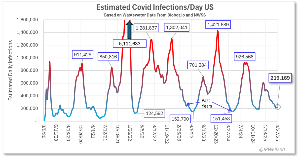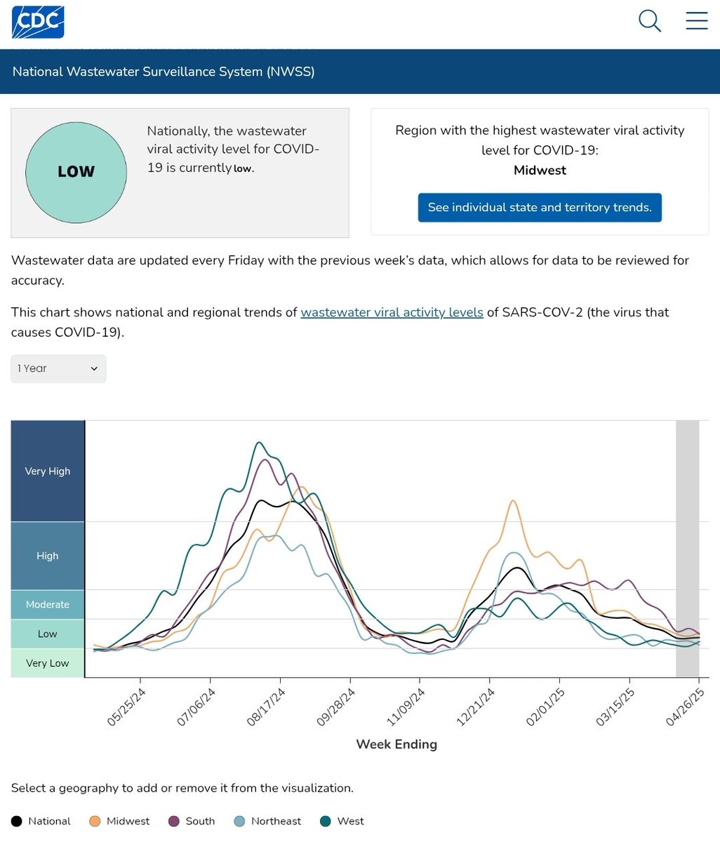 I'm not sure if we'll get quite as low in transmission this spring as the minimums the last 2 years because of a very low winter peak not as efficiently cleaning up the susceptables. A bit of uncharted territory, since immunity is waning but we don't have strong variant growth.