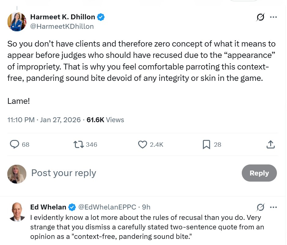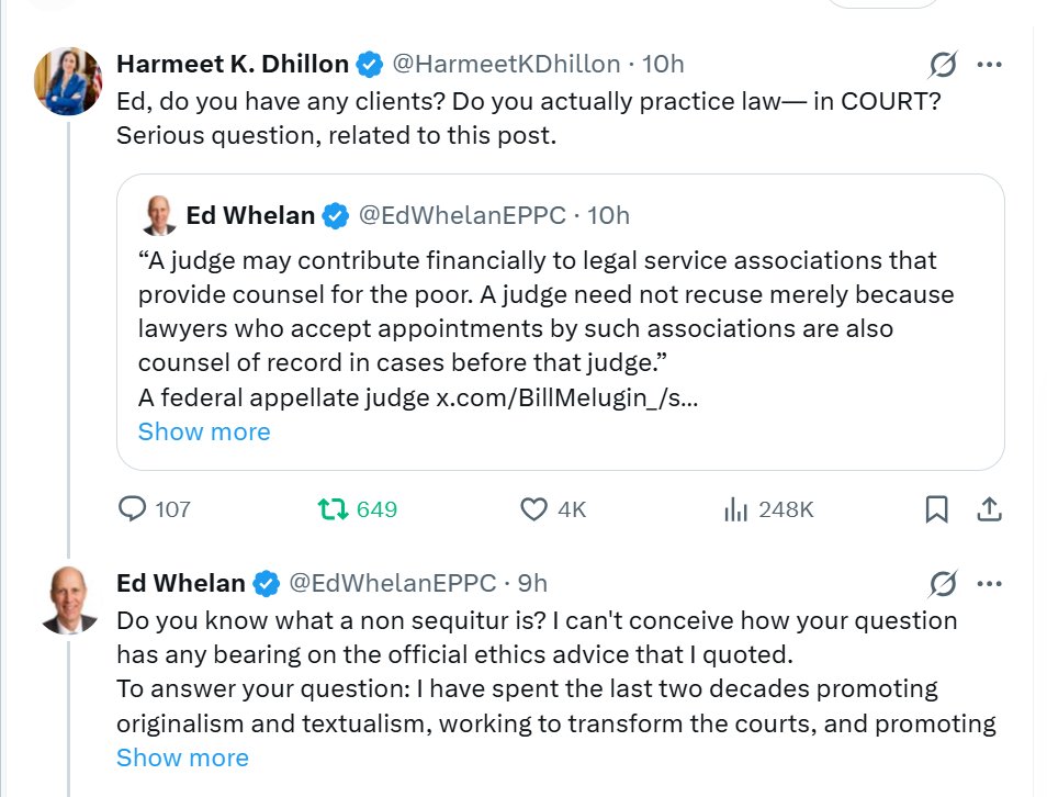 THREAD: Yesterday @EdWhelanEPPC defended Judge Schlitz for not recusing in ICE cases even though he is publicly listed as a donor to Immigrant Law Center of Minnesota. @HarmeetKDhillon called him out. 1/