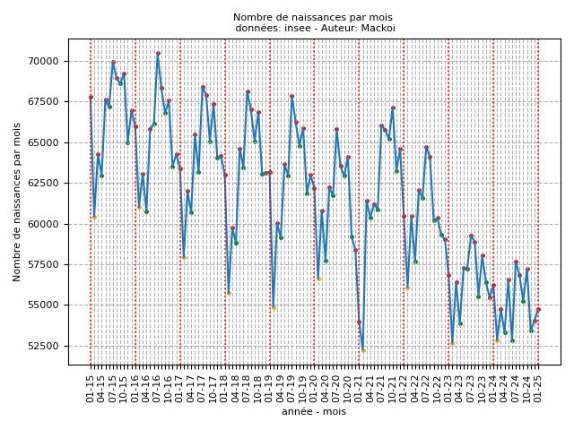 En résumé: Les naissances chutent de façon vertigineuse à partir de septembre-décembre 2022 et s'accompagne d'une perte complète du cycle de celle-ci (pic en été et chute fin d'hiver-début du printemps).
