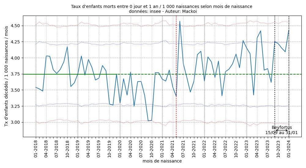 La mortalité à moins d'un an, des bébés nés en janvier 2024, elle est hautement significative à 0,5% ( 249 décès pour un intervalle de confiance à 95% [183;239]).