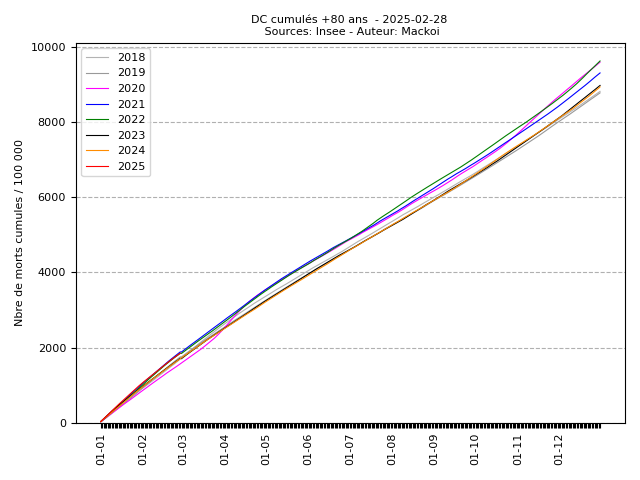 Courbes des taux cumulé de la mortalité à la date du 28 février (calcul approximatif)