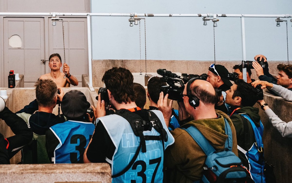 1. Only at Roubaix everyone just waits patiently for the moment when the winner will be showering after the race. (📷: jeredgruber) Image