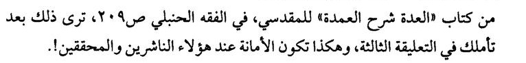 ²) And this book was not the only one from which that story was omitted; rather, it was also removed from the book al-ʿUddah Sharḥ al-ʿUmdah by [Bahāʾ al-Dīn] al-Maqdisī, in Ḥanbalī fiqh, page 209, you will see that after reflecting on the third footnote.