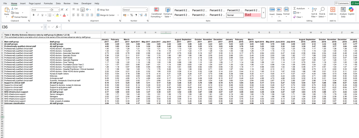 But going back to the 'NHS sickness absence by reason and staff group' data... which is all here for you to dig into: digital.nhs.uk/data-and-infor…