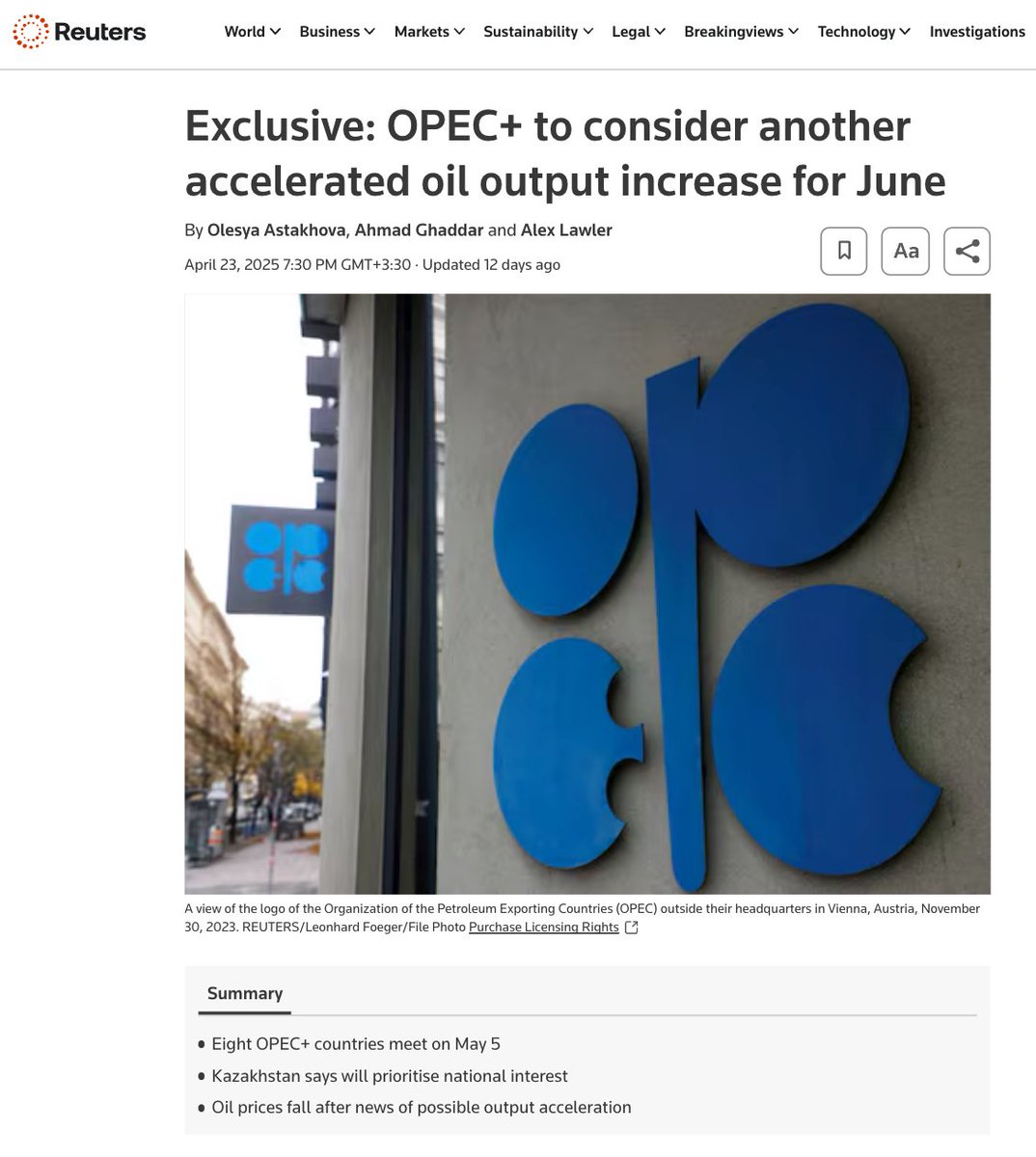 @MeetThePress پیوست ۱۴. نیاز شدید ترامپ برای کاهش قیمت نفت و اراده او به اخراج ایران از بازار نفت، موجب فشار وی بر اعضای اوپک شده تا برغم نگرانی جهانی از کاهش تقاضا و سقوط قیمت نفت، دست به افزایش تولید بزنند و این رویه را ادامه دهند./۱۵