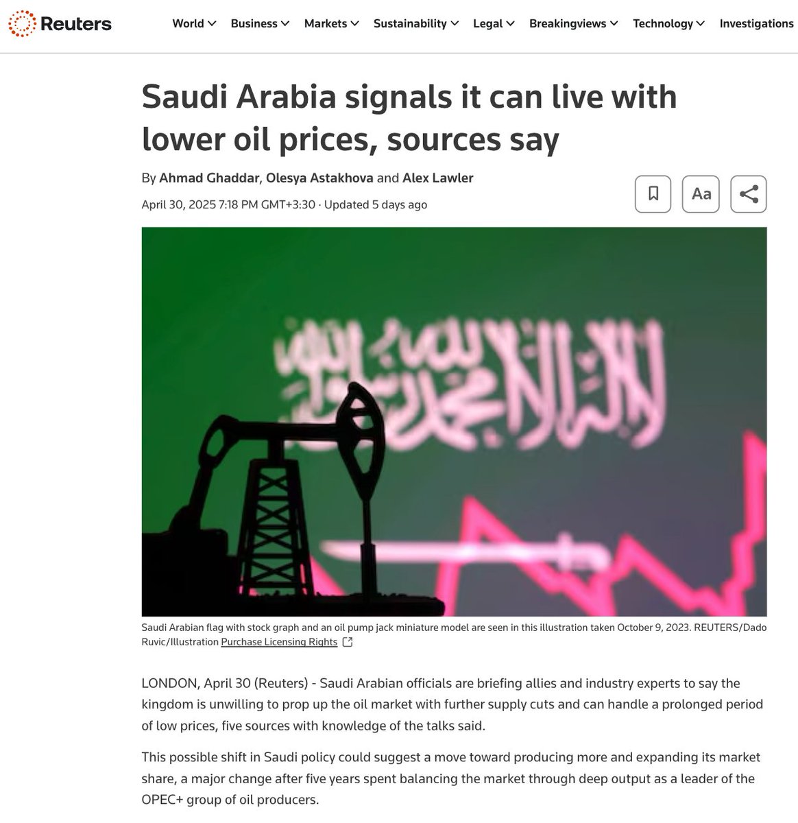 @MeetThePress پیوست ۱۵. در این میان نقش سعودی به عنوان لیدر دو فاکتوی اوپک حیاتی است. سعودی برغم اینکه برای رسیدن به برنامههای جاه طلبانه خود به نفت ۹۰ دلاری نیاز دارد، اخیرا این سیگنال را صادر کرده که حاضر است با قیمت پایین نفت کنار بیاید./۱۶