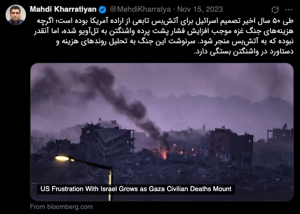 پیوست ۲۷. مجددا تکرار میکنم که طی ۵۰ سال اخیر، تصمیم اسرائیل برای پذیرش آتش بس تابعی از تصمیم واشنگتن برای پایان جنگ بوده است. تهران با فراموش کردن نقش مهم اقتصاد در انتخابات ۲۰۲۴ و نقش تعیین کننده نفت، به سراغ ابزارهایی رفت که فاقد کارایی بودند و اکنون نیز در حال تکرار همان اشتباه است./۲۹