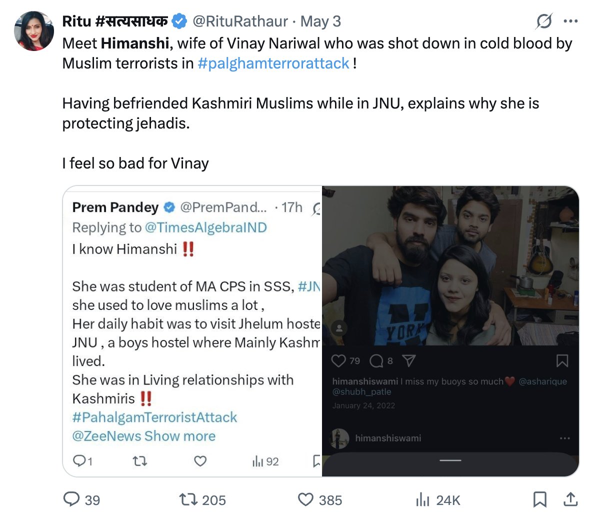 Apart from several Info-War subjects initiated by #Rawalpindi, targeting Kashmiri Muslims and #PahalgamTerroristAttack victim #HimanshiNarwal is also initiated by ISI to isolate #Kashmir again after abrogation of Article 370.