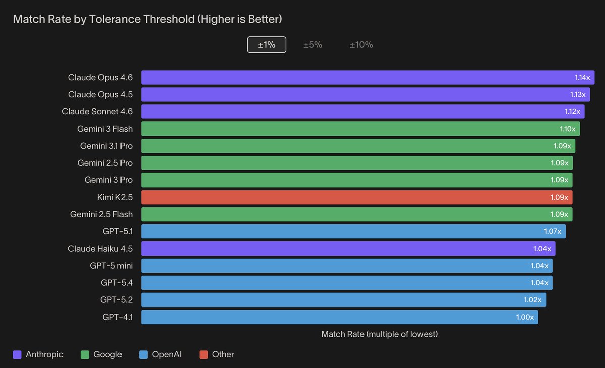 Despite the recent release of GPT-5.4, Opus 4.6 still demonstrates the strongest general intelligence of all models evaluated.