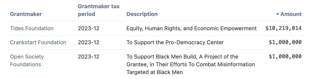 As for financing, State Democracy Project, Tides Foundation (a DAF), and Open Society Action Fund are its top donors.