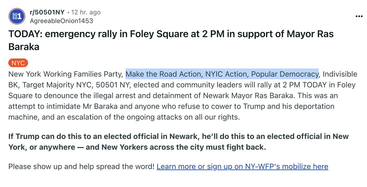Reddit post mentions NYIC Action, Popular Democracy, Indivisible BK, Target Majority NYC ( @reddit_lies - do you know anything about AgreeableOnion1453 who made the original post )
