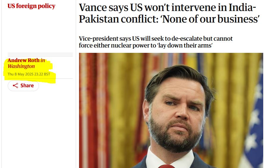 US Vice President said India-Pakistan war is none of our business and we won't intervene, then what happened in next 36 hours that America’s top brass were suddenly wide awake through the night to stop the war