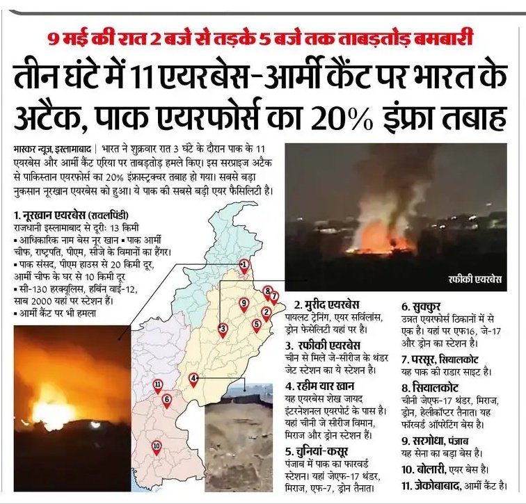 Pakistan targeted India with drones and in retaliation, India destroyed 11 Airbases of Pakistan