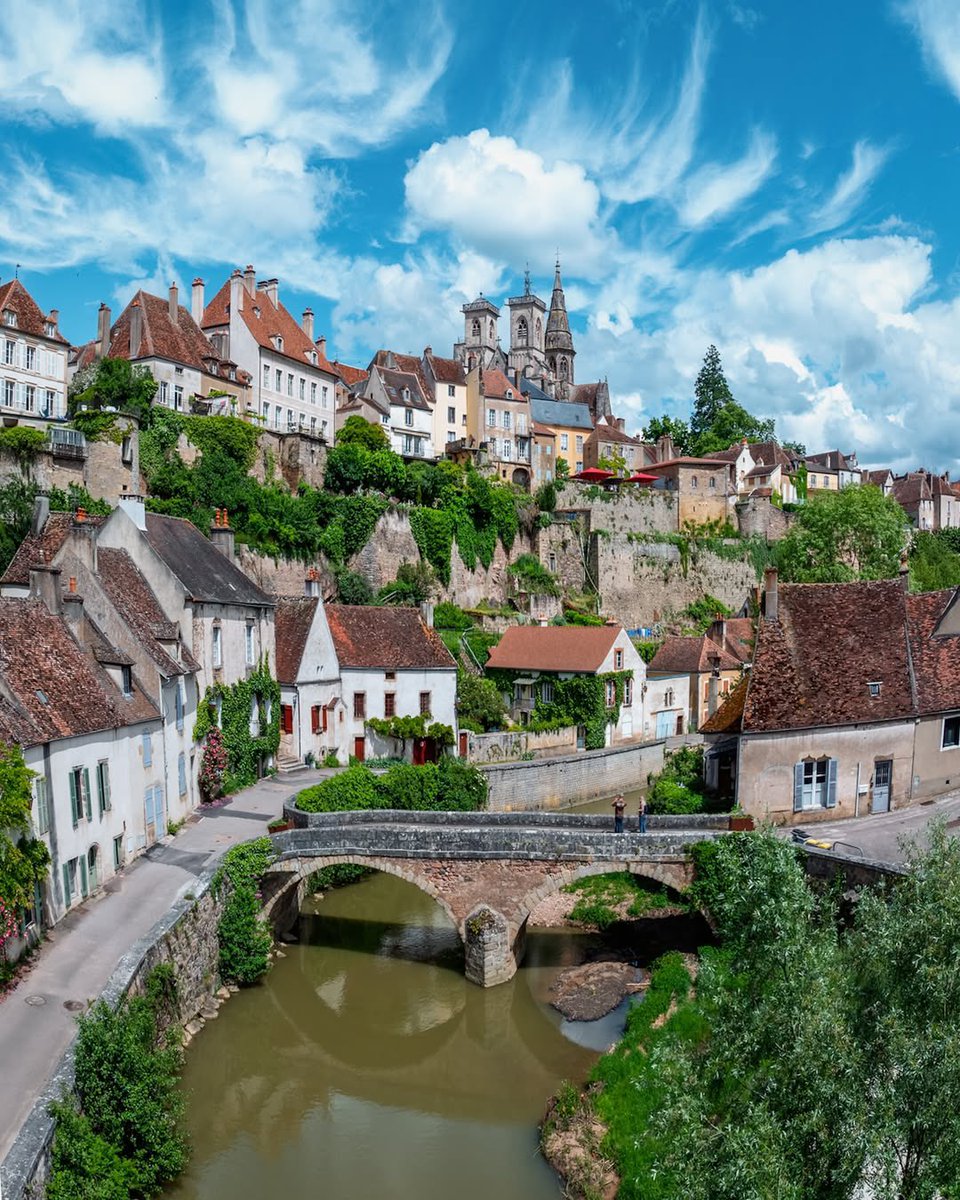 This quiet town in Burgundy is known for its pinkish stone buildings, scenic river views, and medieval towers. It’s a peaceful place to explore history, walk along the ramparts, and enjoy classic French countryside charm without the crowds.