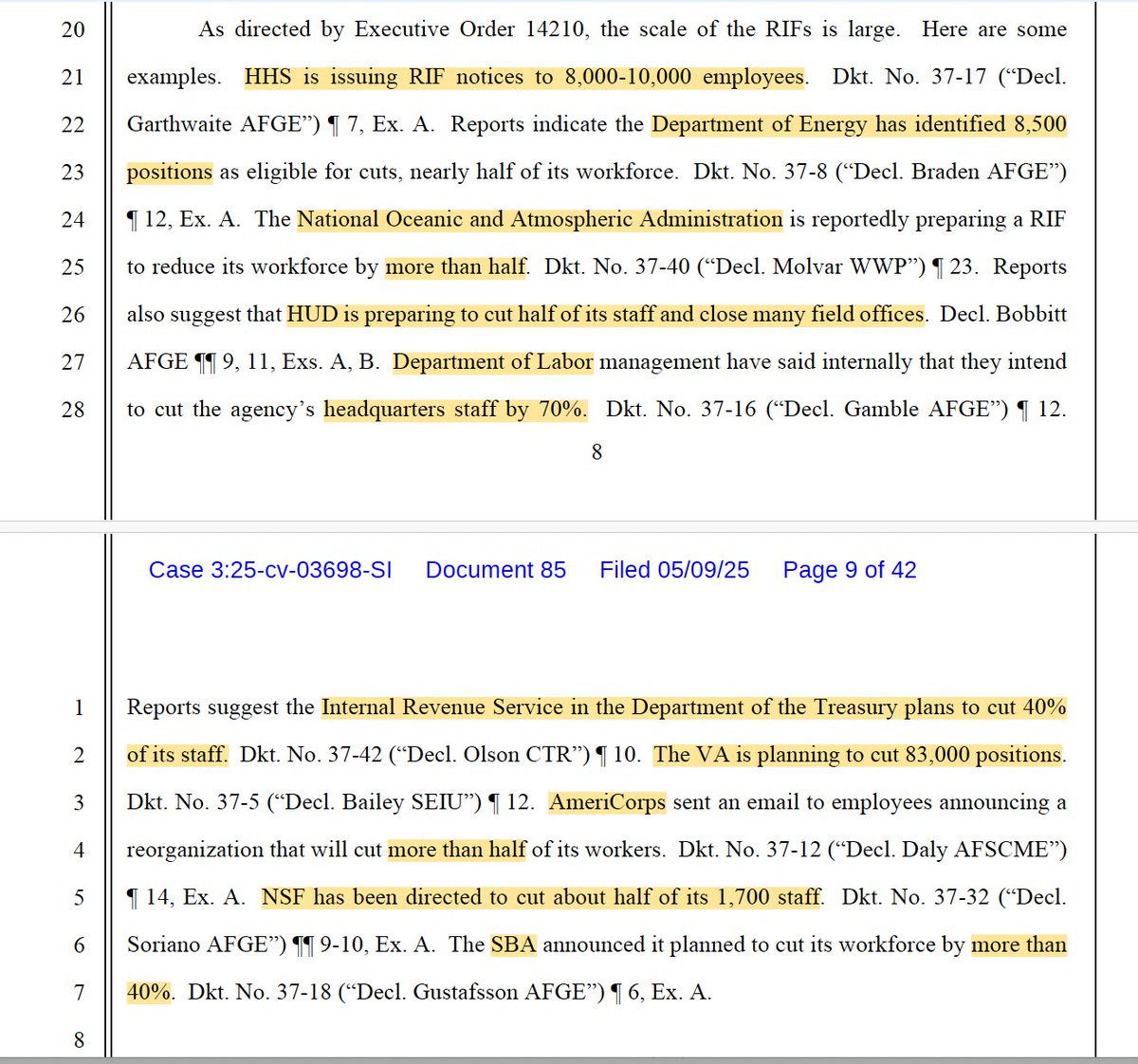 Though we don't yet know the size of all the planned RIFs—Judge Ilston ordered that info disclosed by 4pm PT on 5/13—the plaintiffs' evidence was shocking: