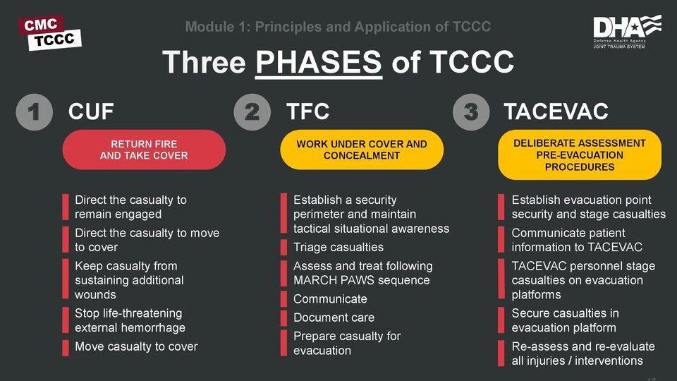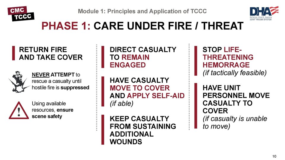 Das Bewusstsein und die Abläufe für TCCC (Tactical Combat Casualty Care/ präklinische Erstversorgung unter Gefechtsbedingungen) kamen auf o wurden verbessert.