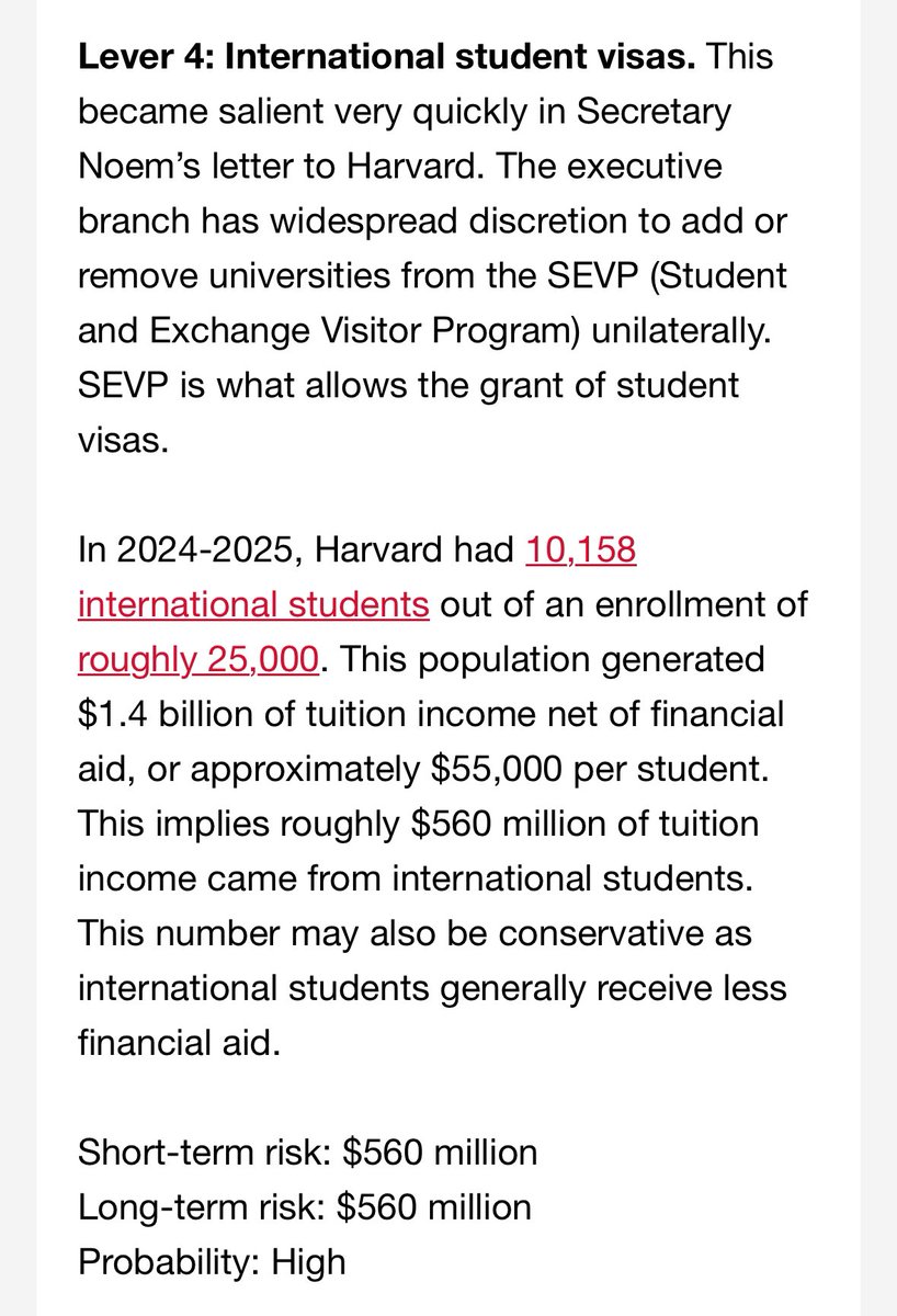 Second, revenues from international students. Losing this money is also a high probability risk and adds up to $560 million per year.