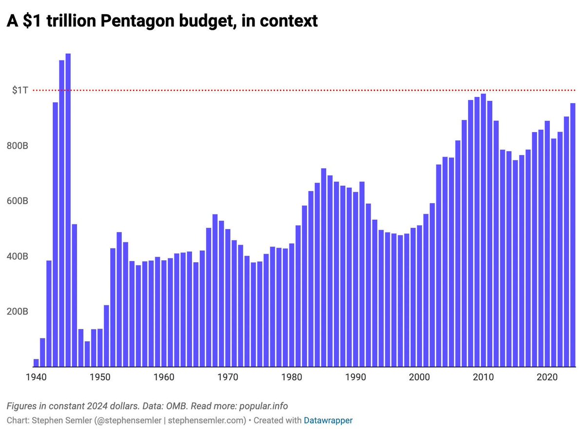 3. With his $1 trillion Pentagon budget request, Trump is proposing that the US spend as much on its military next year as it did annually from 1942–45.