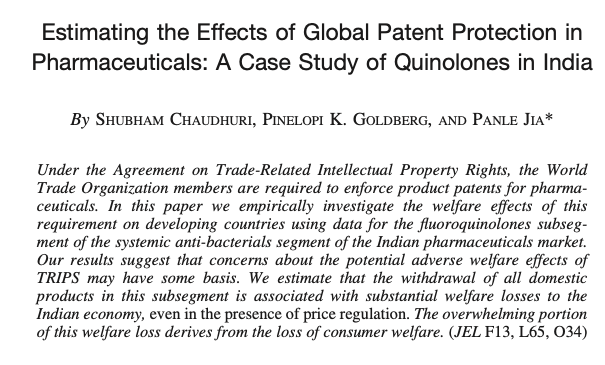 An important caveat here is that it's undoubtedly stupid to reference developing countries. Chaudhuri, @PennyG_Yale, and @panlejia have a great paper demonstrating that the costs far outweigh the benefits to generating profits in developing countries: