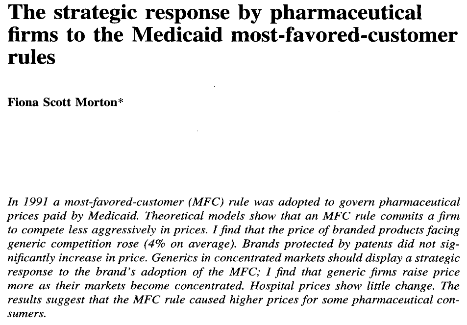 You might be skeptical that drug companies would be so strategic. But there's great evidence from Fiona Scott Morton that drug companies were strategic in exactly this way when Medicaid implemented a reference pricing rule within the US.