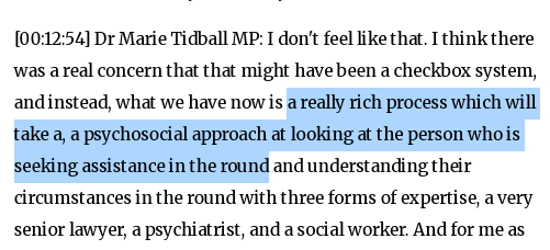 2. Tidball claims that the panel will have a “really rich process”, taking a “psychosocial approach”. Implication is this is a profound, holistic assessment.