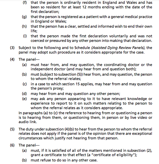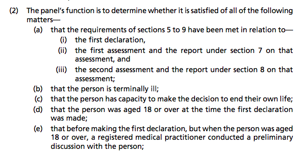 But the clause just says the panel need to be “satisfied” the person meets the criteria—terminally ill, not coerced etc.
