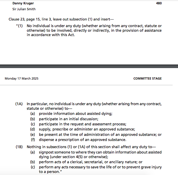 That section of the bill very clearly only refers to *individual* conscientious objection, not institutions such as hospices: