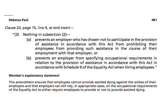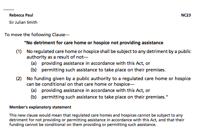 These aimed to give hospices an institutional opt-out without facing legal action; and to ensure they wouldn’t lose public funding for not doing assisted suicide.