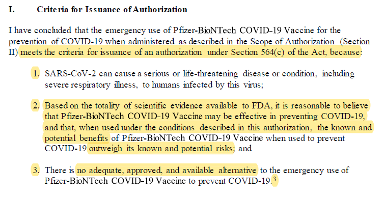 Reality: The EUA law DOES give the FDA more flexibility during review. What it DOES NOT do is allow FDA to lie about that discretion! There's a legal term for that, I'm sure.