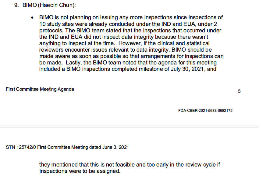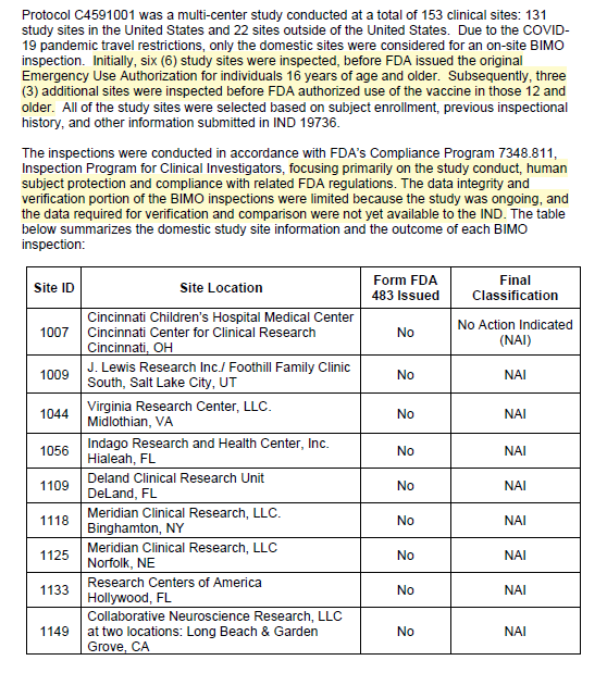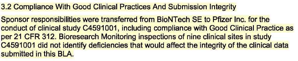 ⚠️Pg. 15 “Bioresearch Monitoring inspections of nine clinical sites in study C4591001 did not identify deficiencies that would affect the integrity of the clinical data submitted in this BLA.”