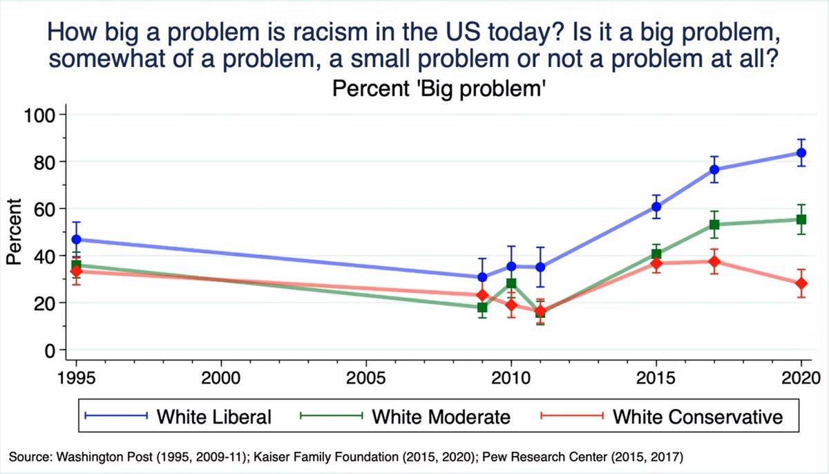 8/ According to value change theorists like Ron Inglehart, affluence and security were producing a new left-liberal generation, one birth, one funeral and one college degree at a time. This held true for 60 years