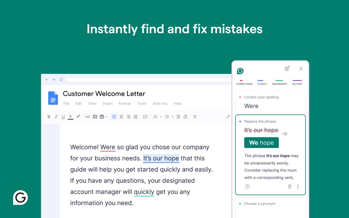Grammarly for Chrome offers real-time suggestions—including generative AI, grammar check, and more—to help you improve your writing online, no matter what you’re working on.