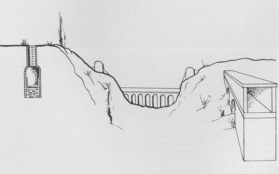 Most aqueduct channels were underground, but where lowlands made this difficult, two methods were employed to cross the gap: bridges and siphons.