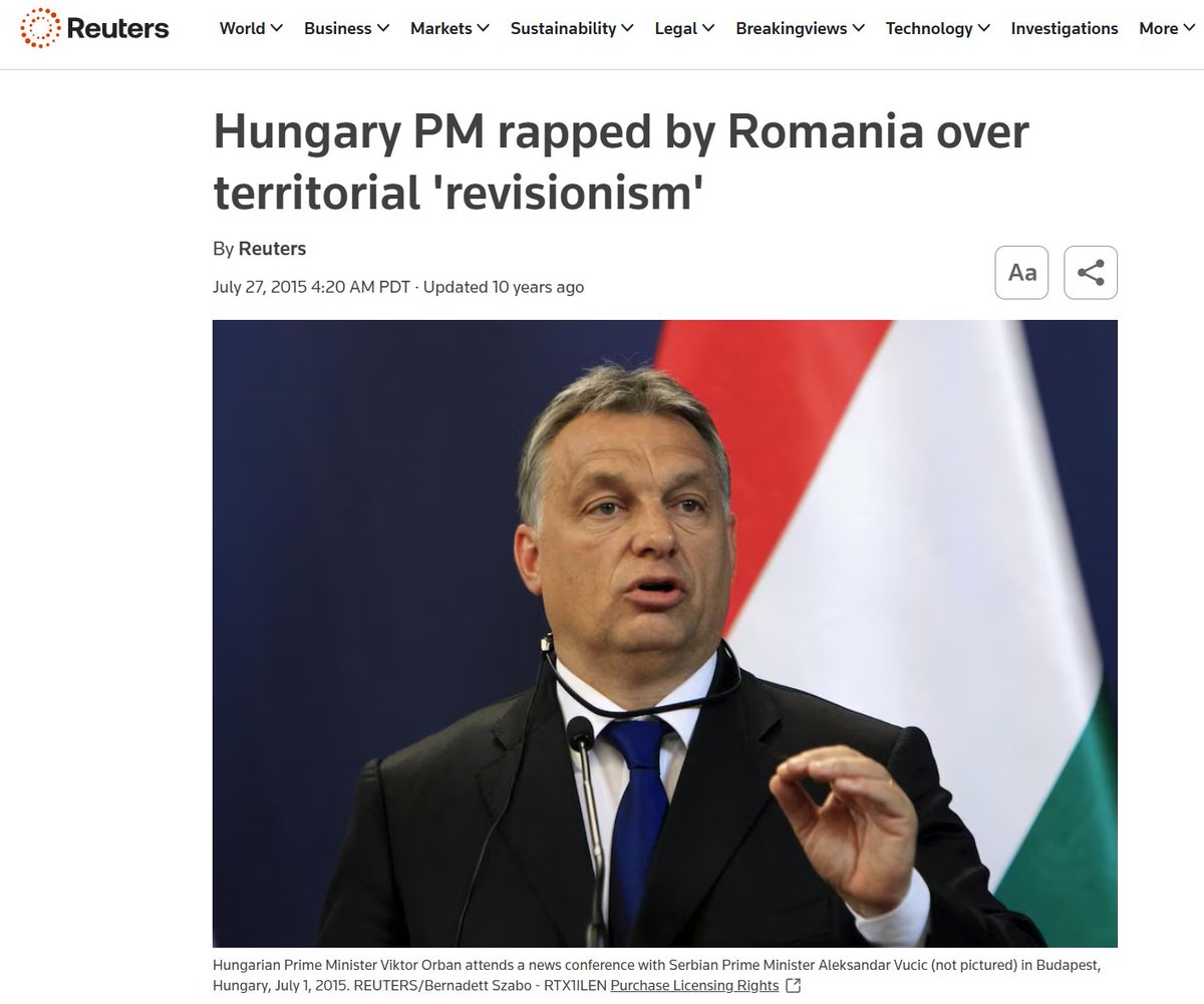 The same mindset exists in his rhetoric about Romania’s Transylvania, where 1.2M ethnic Hungarians live.