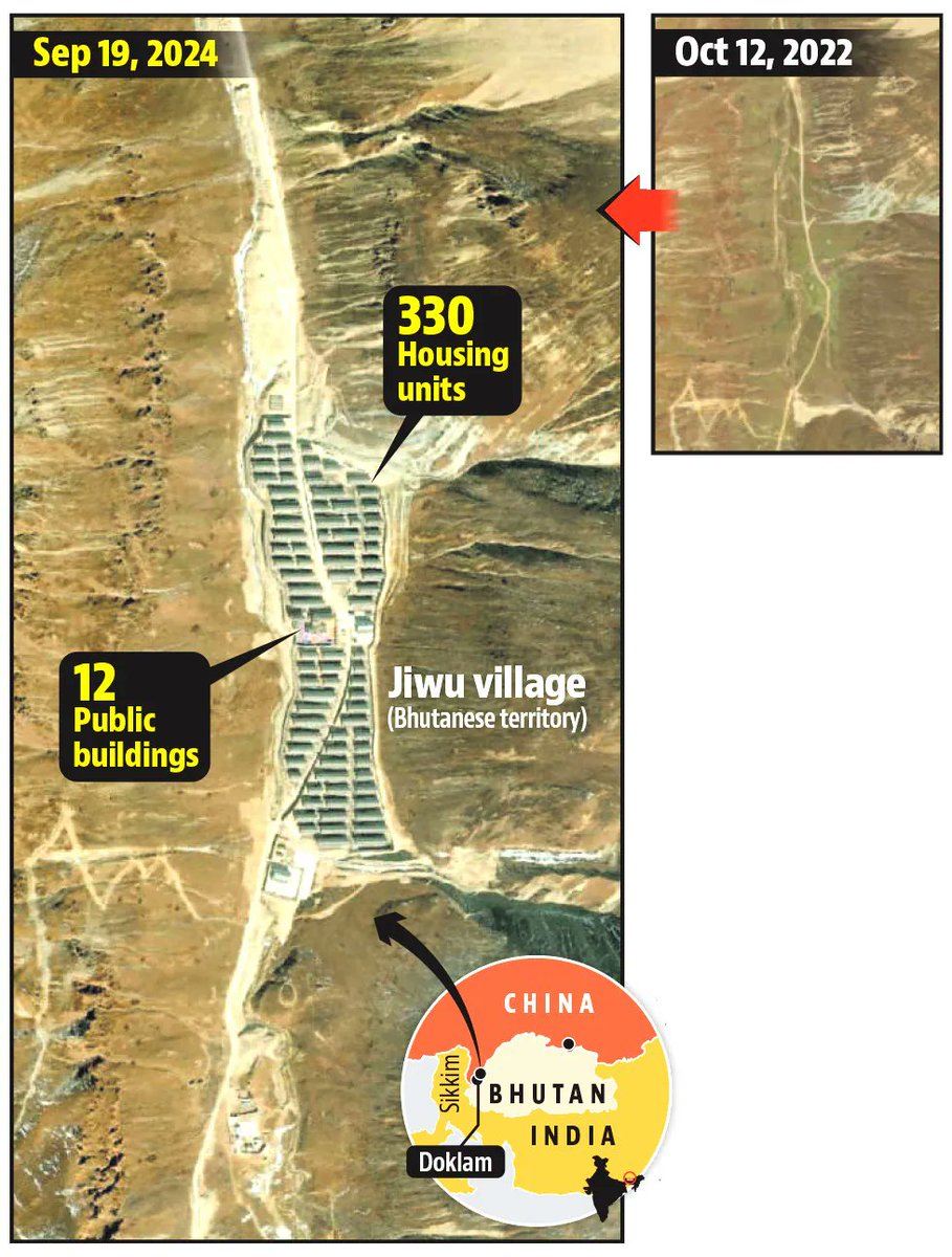 According to satellite imagery, China has built at least 22 villages & settlements over the past 8 years within territory that has traditionally been part of Bhutan, with 8 villages emerging in areas in proximity to the strategic Doklam plateau since 2020.